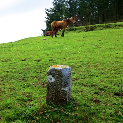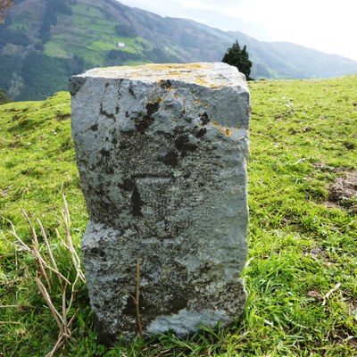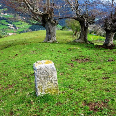 - Desde el caserío Illordo, en el prado que se encuentra al oeste hay tres hayas, el mojón está encima de ellas. Dista del anterior 89m en dirección 205º SO.