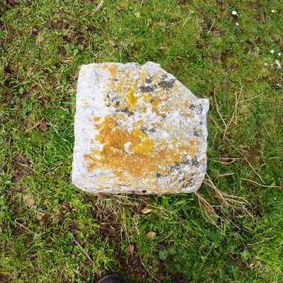 - Mojón de forma prismática de base cuadrada, hecho de piedra caliza.