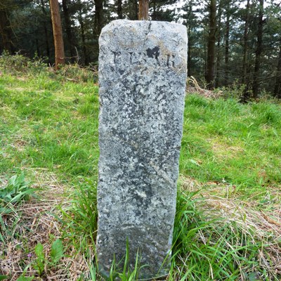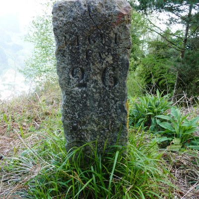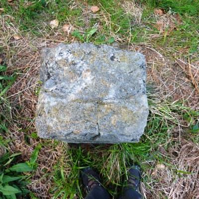 Mojón de forma prismática de base cuadrada, hecho de piedra caliza.