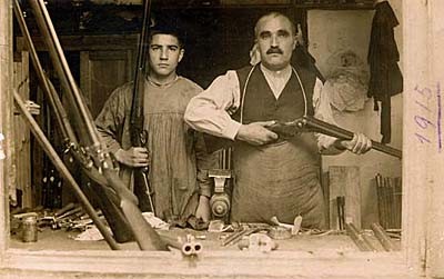 Oficios tradicionales de Eibar: armería, máquinas de coser y bicicletas.