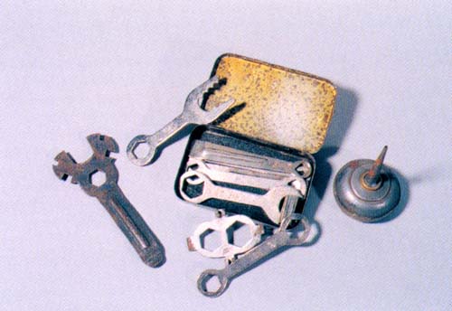 Aceitera y caja de herramientas con llaves, tensadores...