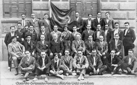 1931. Agrupación Juventud Republicana en la parte posterior del Ayuntamiento de Eibar. Fondo Castrillo Ortuoste. Archivo Municipal de Eibar.