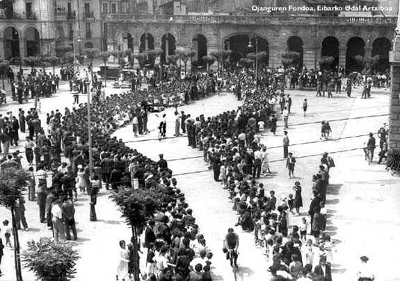 1934. Zinta-karrera Zezen Plazan, Eibarko Klub Deportiboak antolatutako II. Pedalaren jaian. Ojanguren Fondoa. Eibarko Udal Artxiboa.