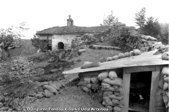 Gerra frontea, 1937. Lubakiak Santa Kurutzko ermita inguruan. Indalecio Ojanguren argazki bilduma. Eibarko Udal Artxiboa.