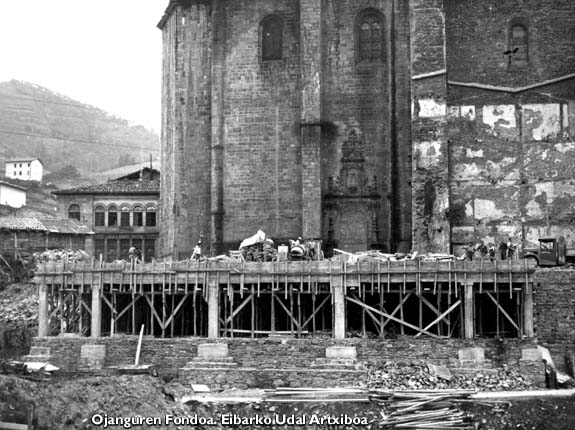 San Andres elizaren ingurua berreraikitzen. 1941. Fondo Marqués de Santa María del Villar. Eibarko Udal Artxiboa.