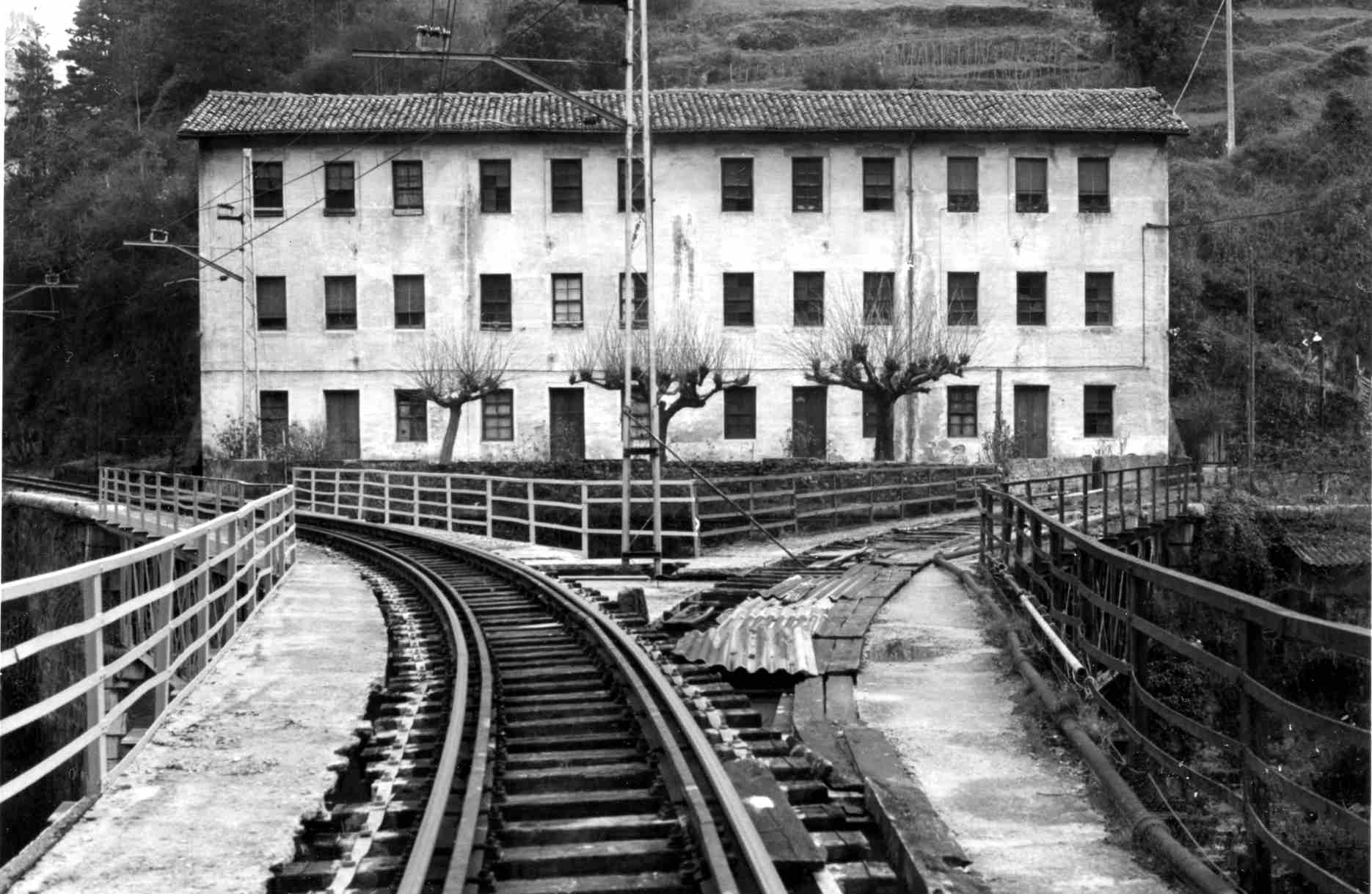 1986. Langileen etxeak. Trenbide biak oraindik ondo ikusten dira: Donostiara eta Gasteizera