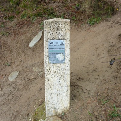 - Urkora bidean Elorretagoikua baserria pasatutakoan, eskuinera biratuko dugu ondoren pinuditik igotzen den bidezidorra hartzeko. Mugarria justu bidezidorraren hasieran dago. Aurreko mugarritik 88 m-ra dago, 17º ipar-ekialderantz.