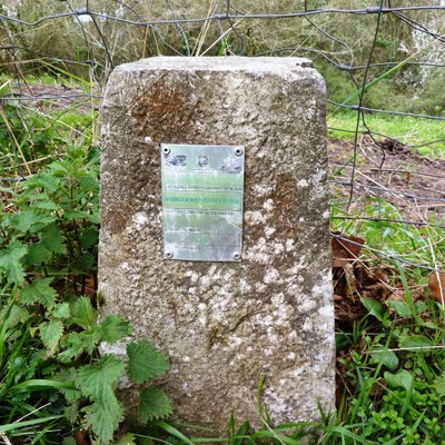 E eta MJ letrak ditu zizelkatuta. Plaka metaliko bat du erantsita “Markina-Xemein eta Eibar / M9” inskripzioarekin.