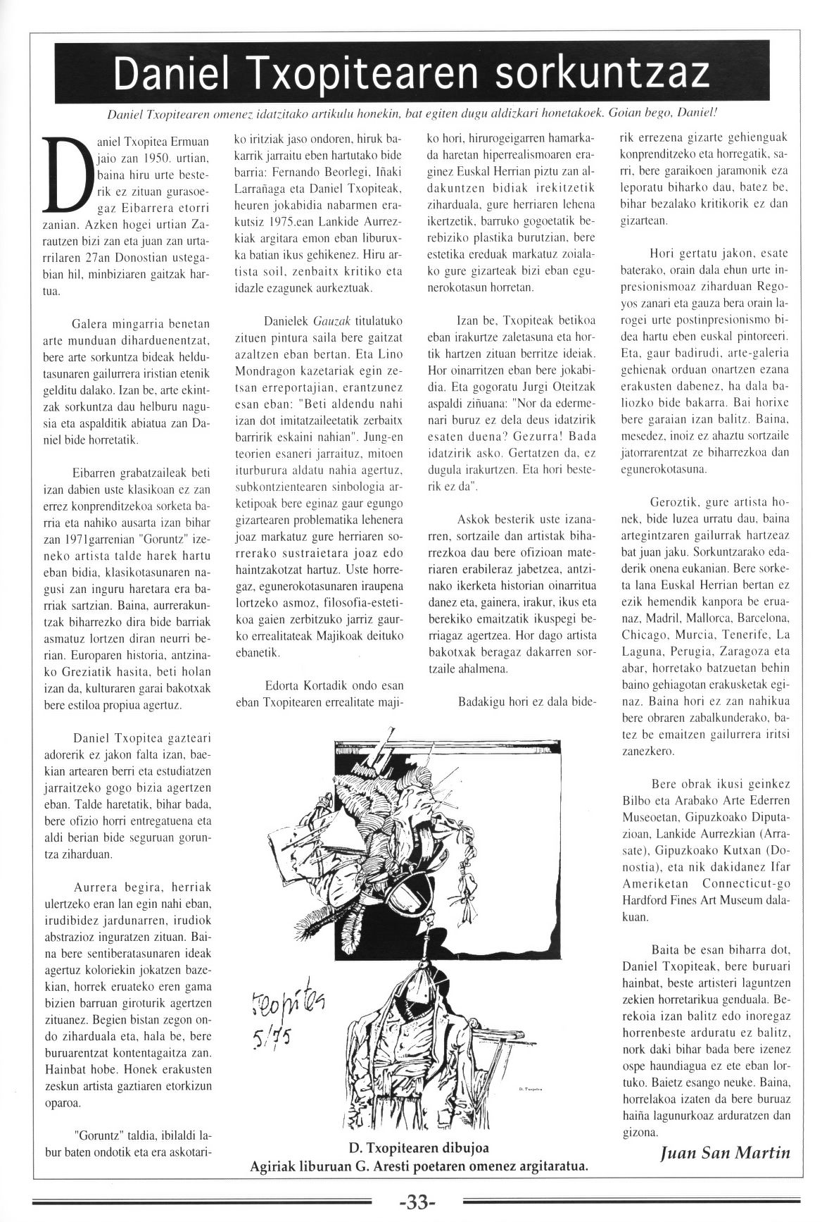 Daniel Txopitearen sorkuntzaz - Juan San Martin